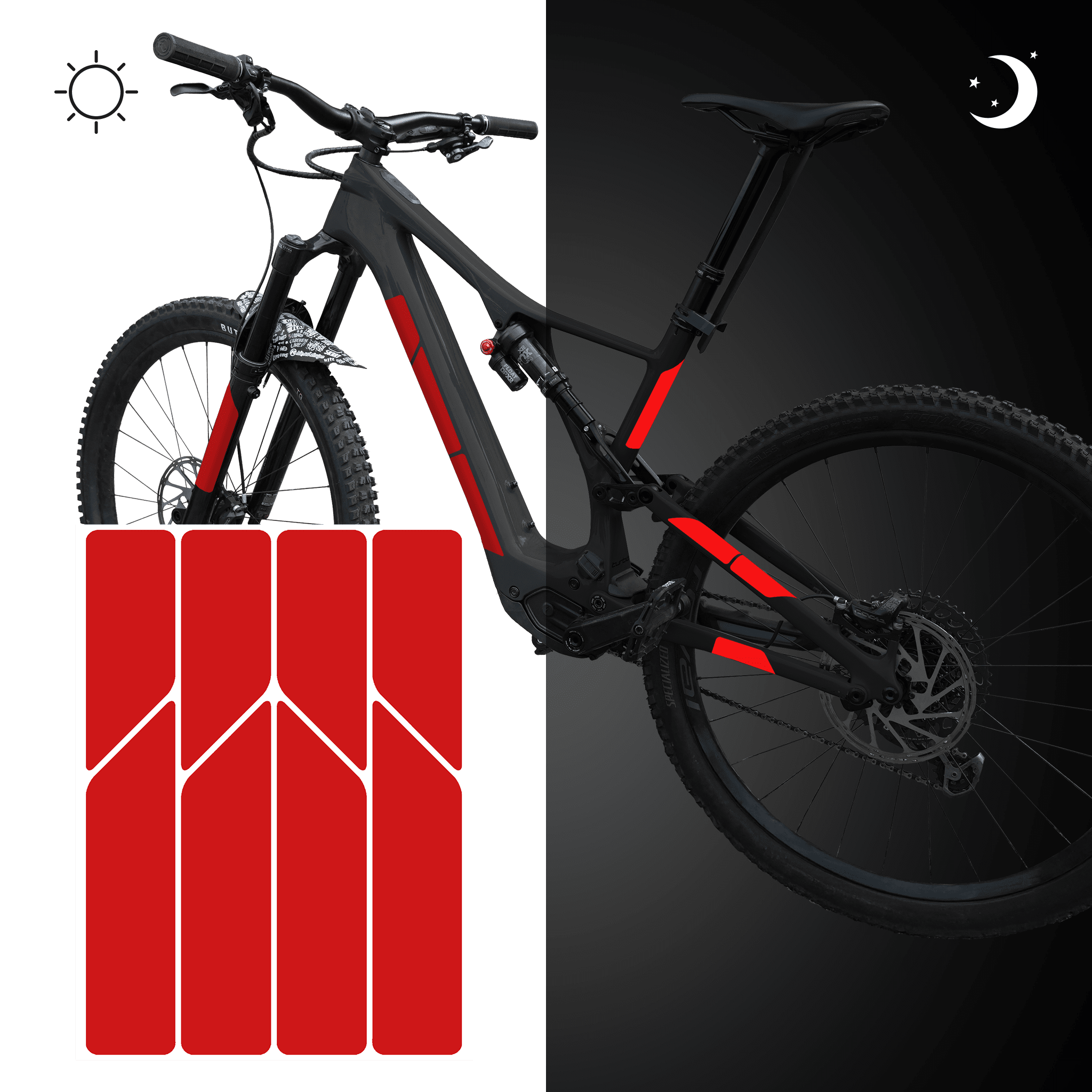 Reflektierende Aufkleber fürs Fahrrad – re:flex frame red